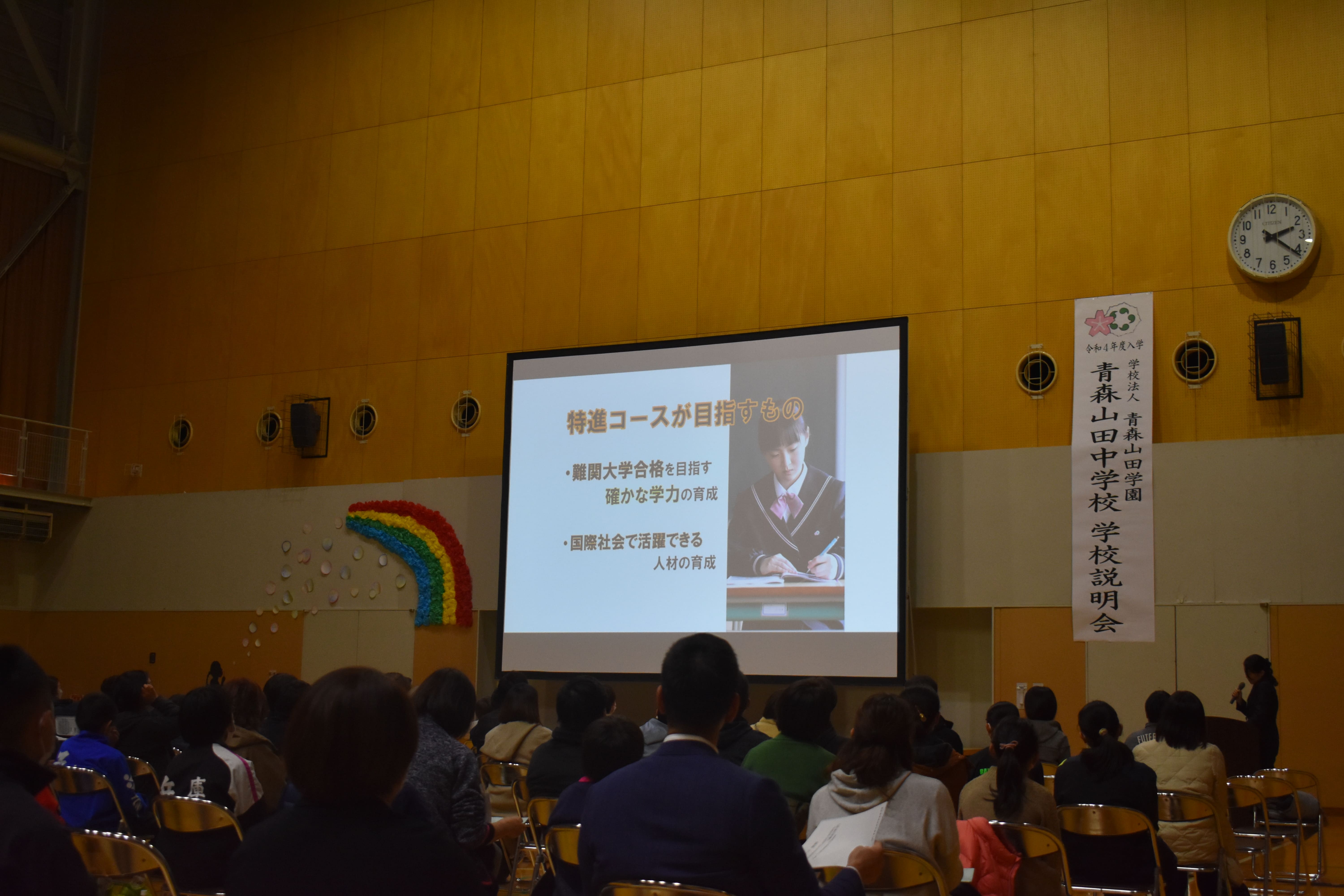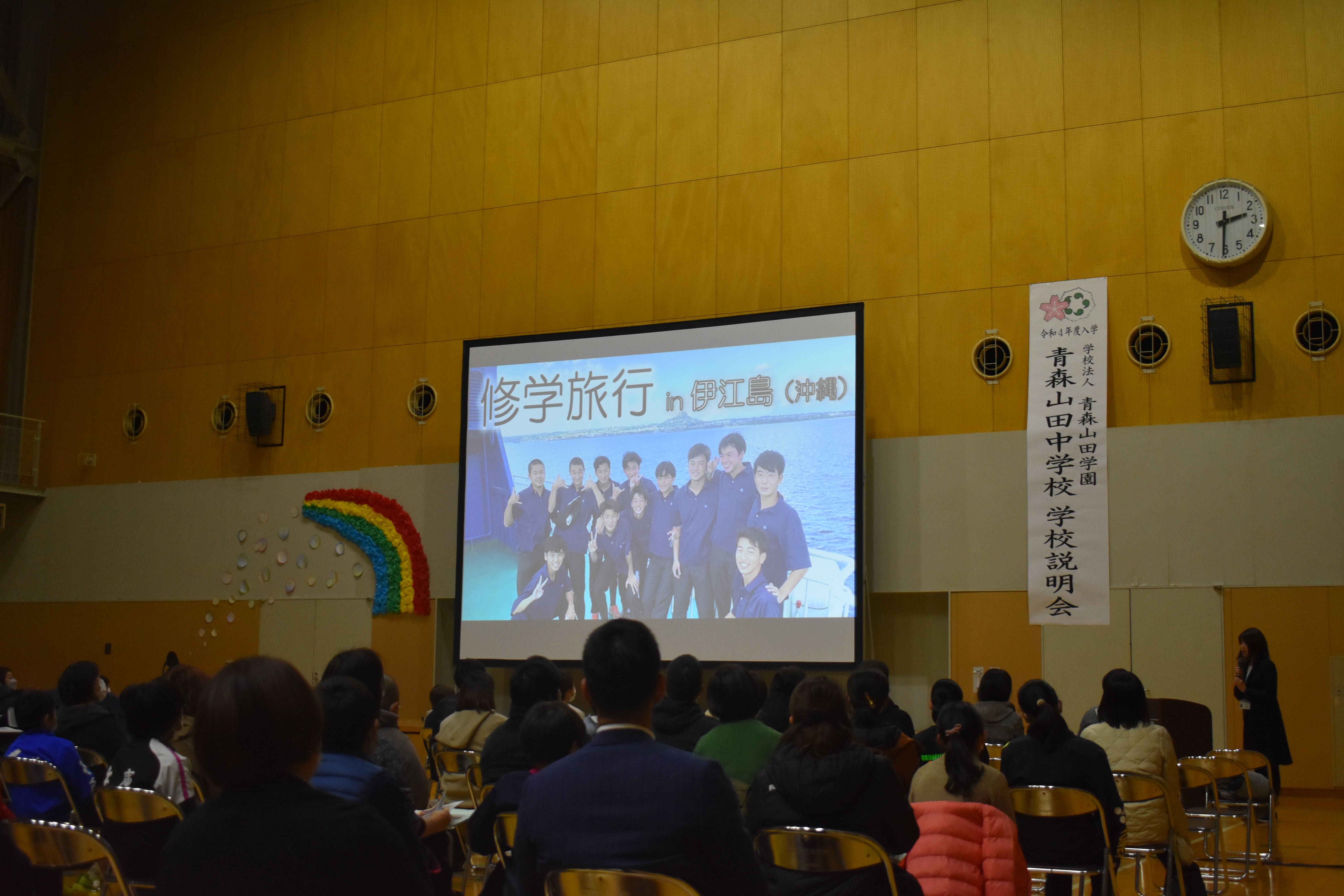11月20(土)に令和4年度入学者向けの学校説明会が中学校体育館で行われました。