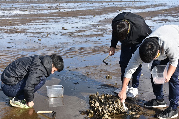 午前中は浅所海岸で砂浜海岸の生物の観察学習を行い、午後は浅虫水族館を見学しました。