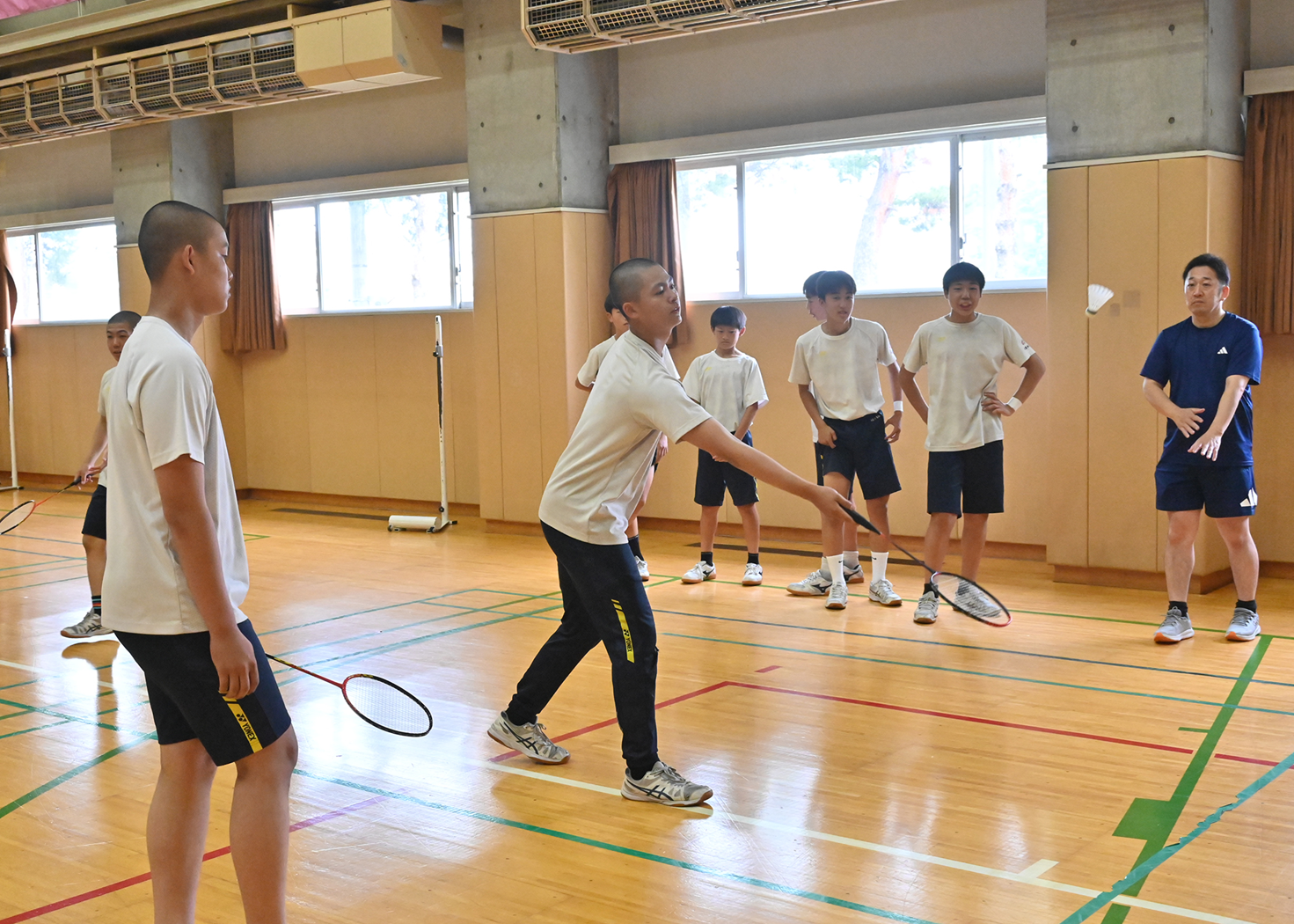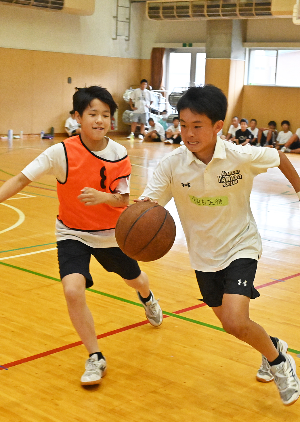 午前の種目はサッカー、バドミントン、卓球、午後はキックベースボール、バレー、バスケットボールです。