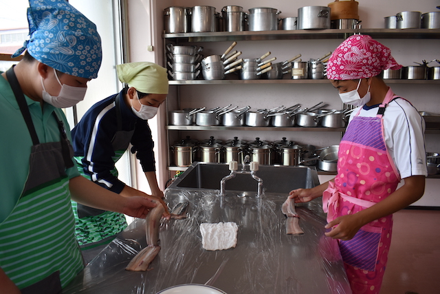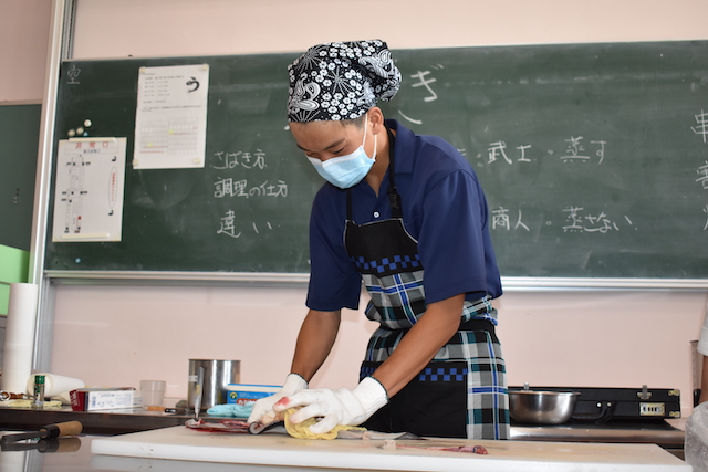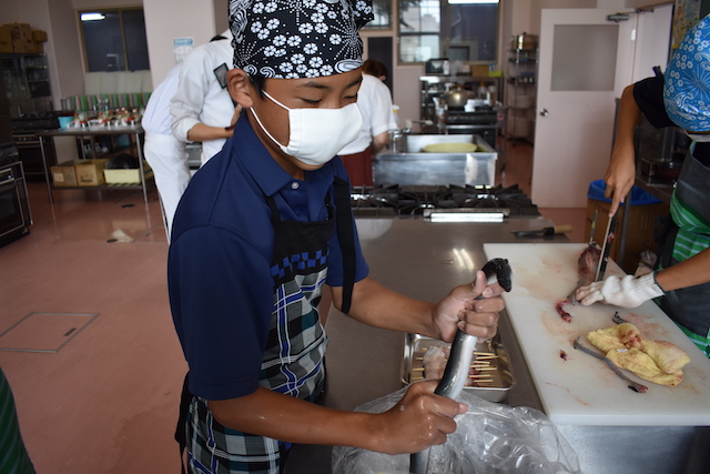 生きたウナギを触るのは、ほとんどの生徒にとって初めての体験でしたが、慣れない手つきながら真剣にさばいていました。