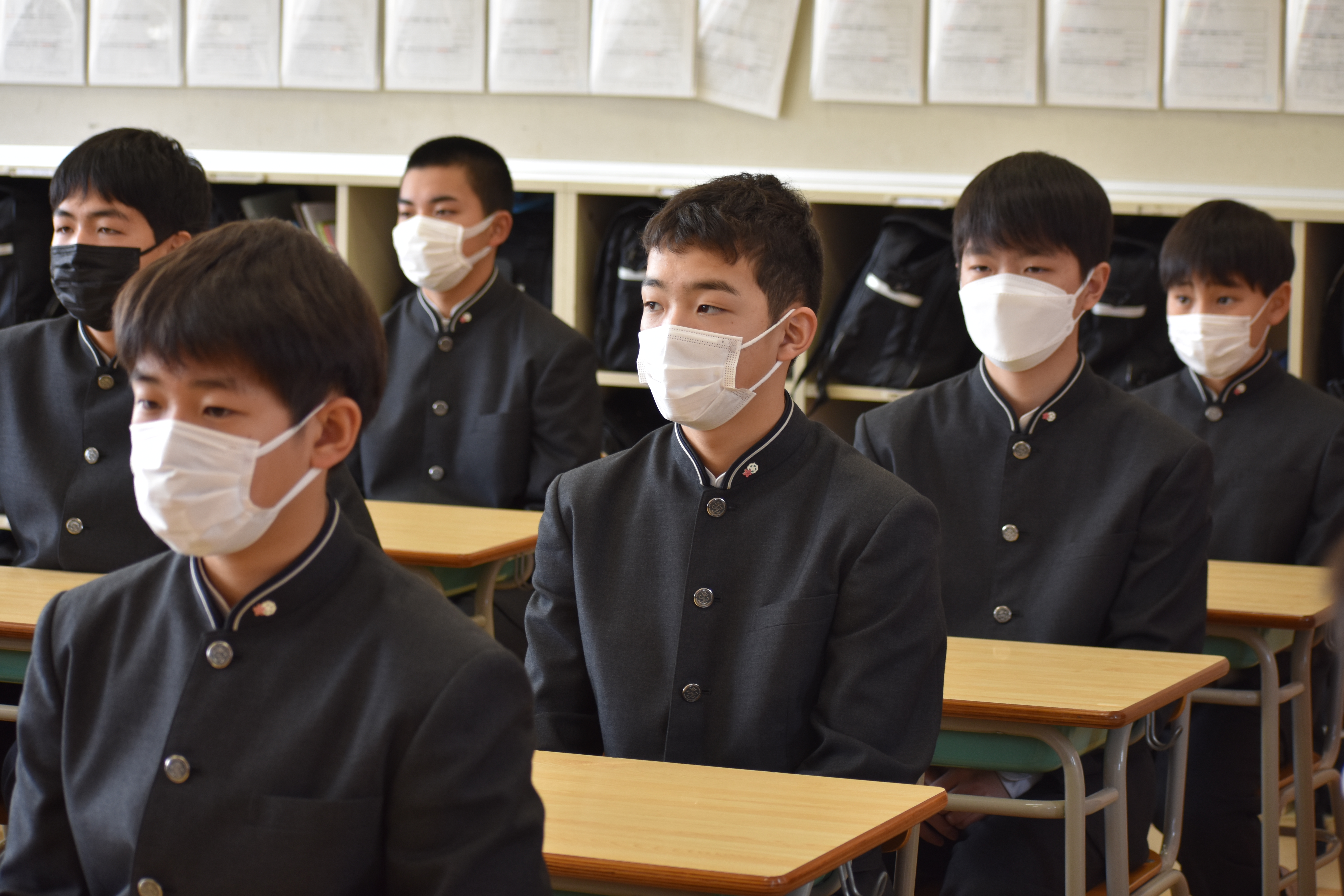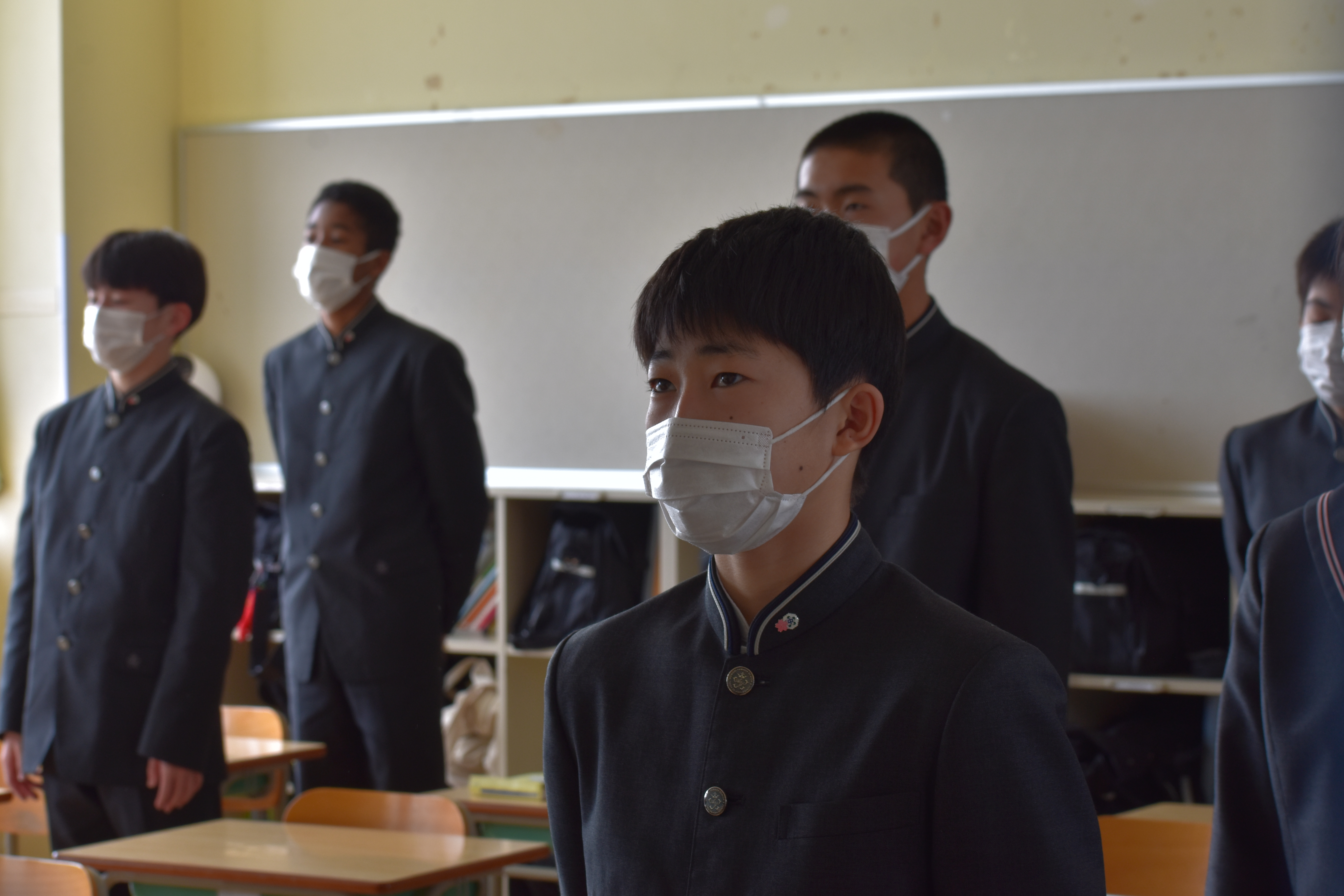 感染予防対策として、各教室で放送による式となりました。