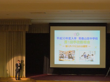 説明会では、生まれ変わった青森山田中学校の魅力を校長先生、教頭先生に説明していただきました。