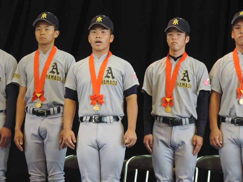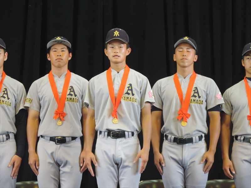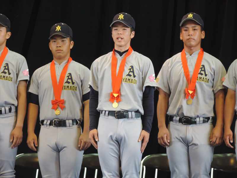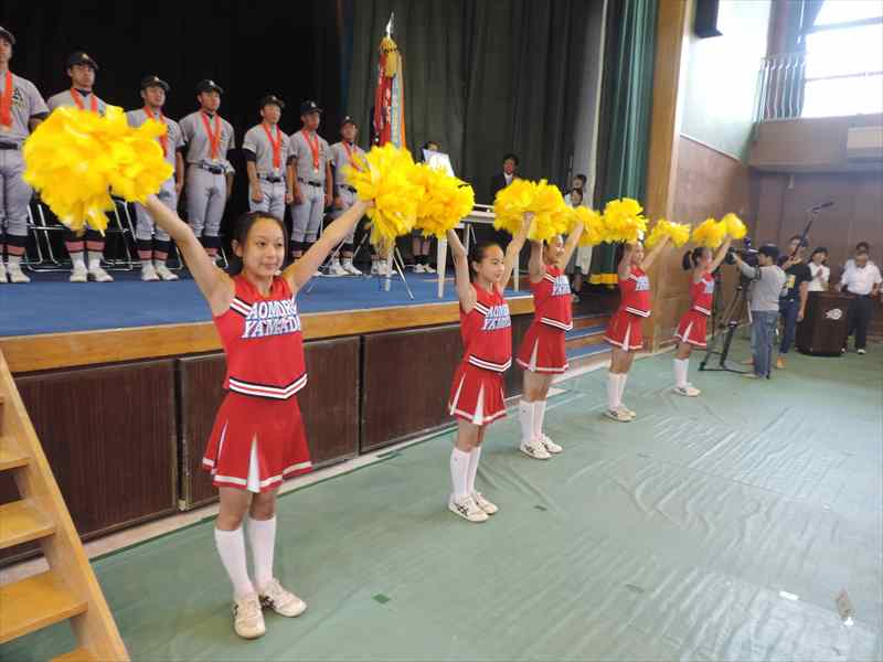 7月28日(金)9:00から高等学校第一体育館で優勝報告会と甲子園へ向けての壮行式が行われました。