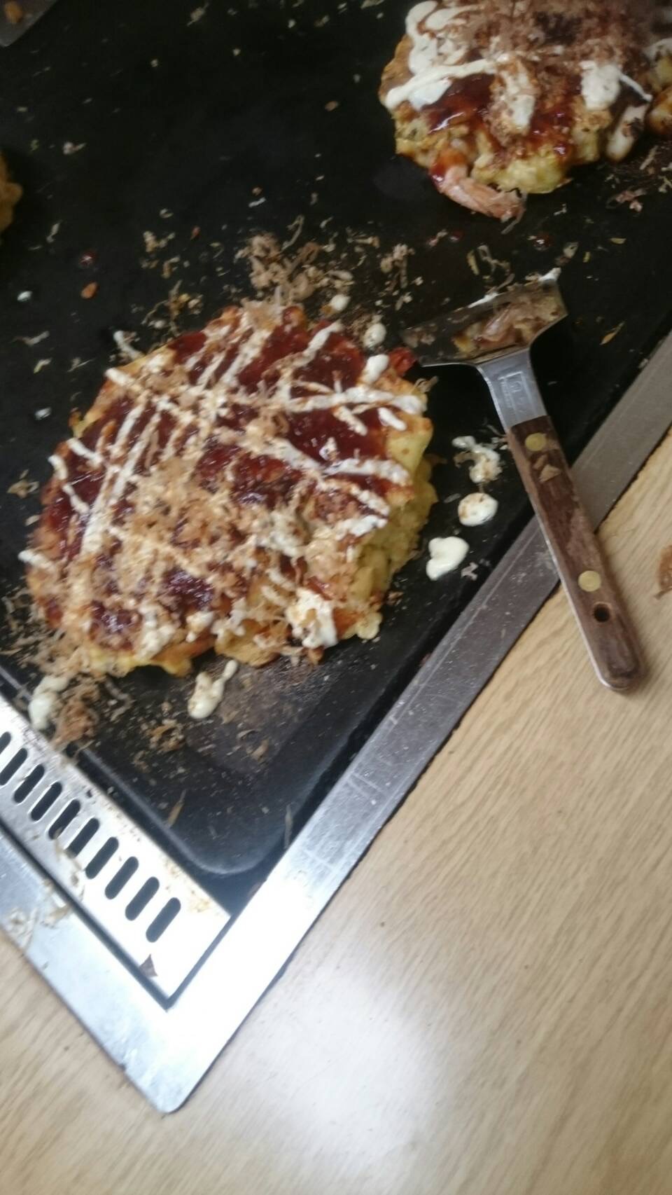 元気な店主のおじさんに本場のやり方を丁寧に教えてもらいながら自分たちで作ったお好み焼きをいただきました。