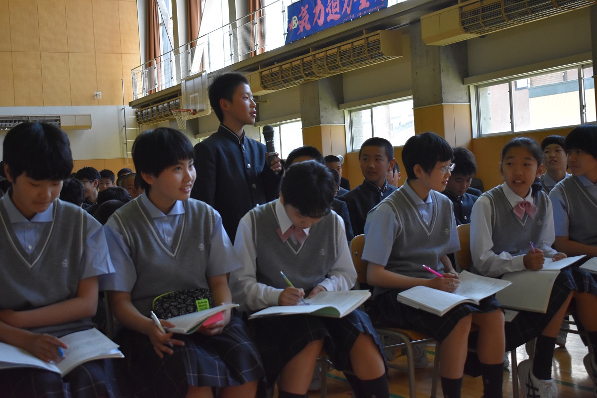 山中生もメモを取りながら卒業生の講話を真剣に聞いていました。