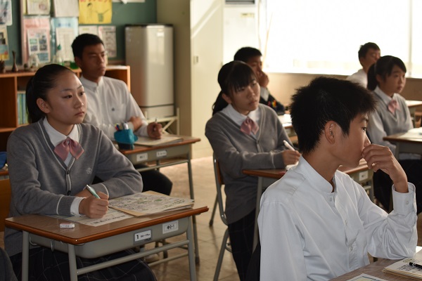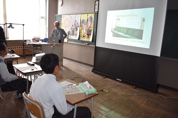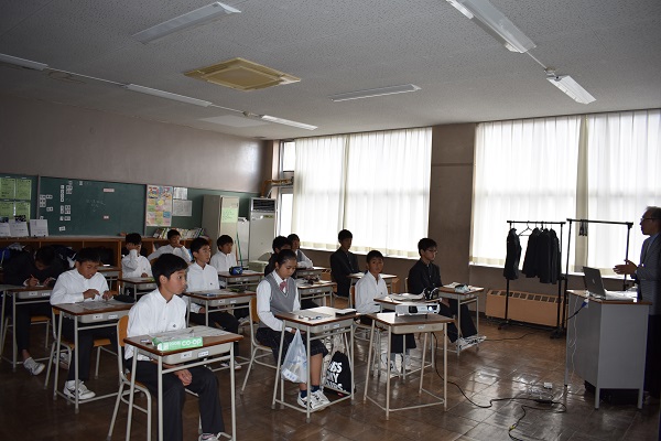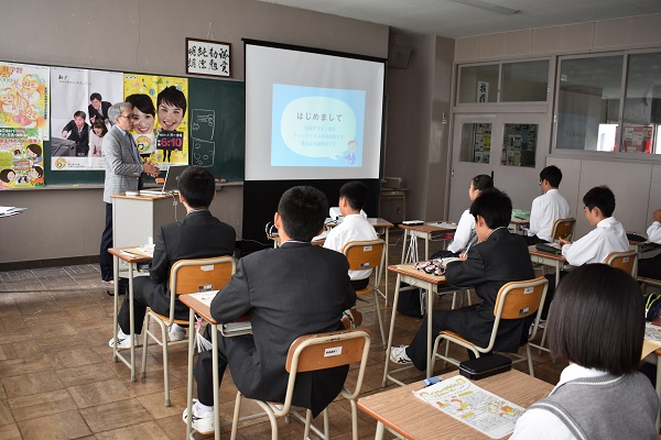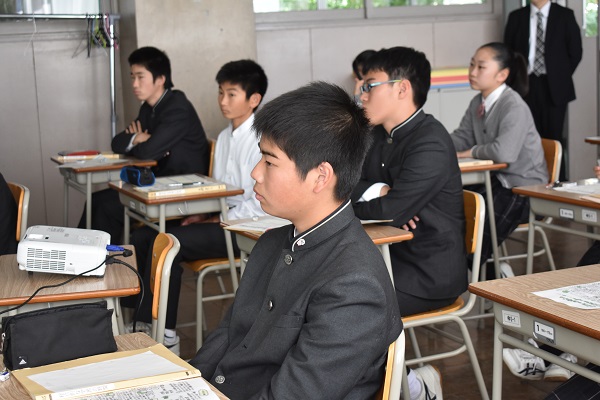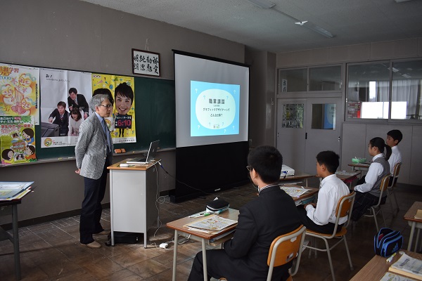 本日、特進コースでは、総合的な学習の時間にグラフィックデザイナーの髙橋勉さんを講師にお招きして、その仕事内容ややりがいなどについてお話を伺いました。