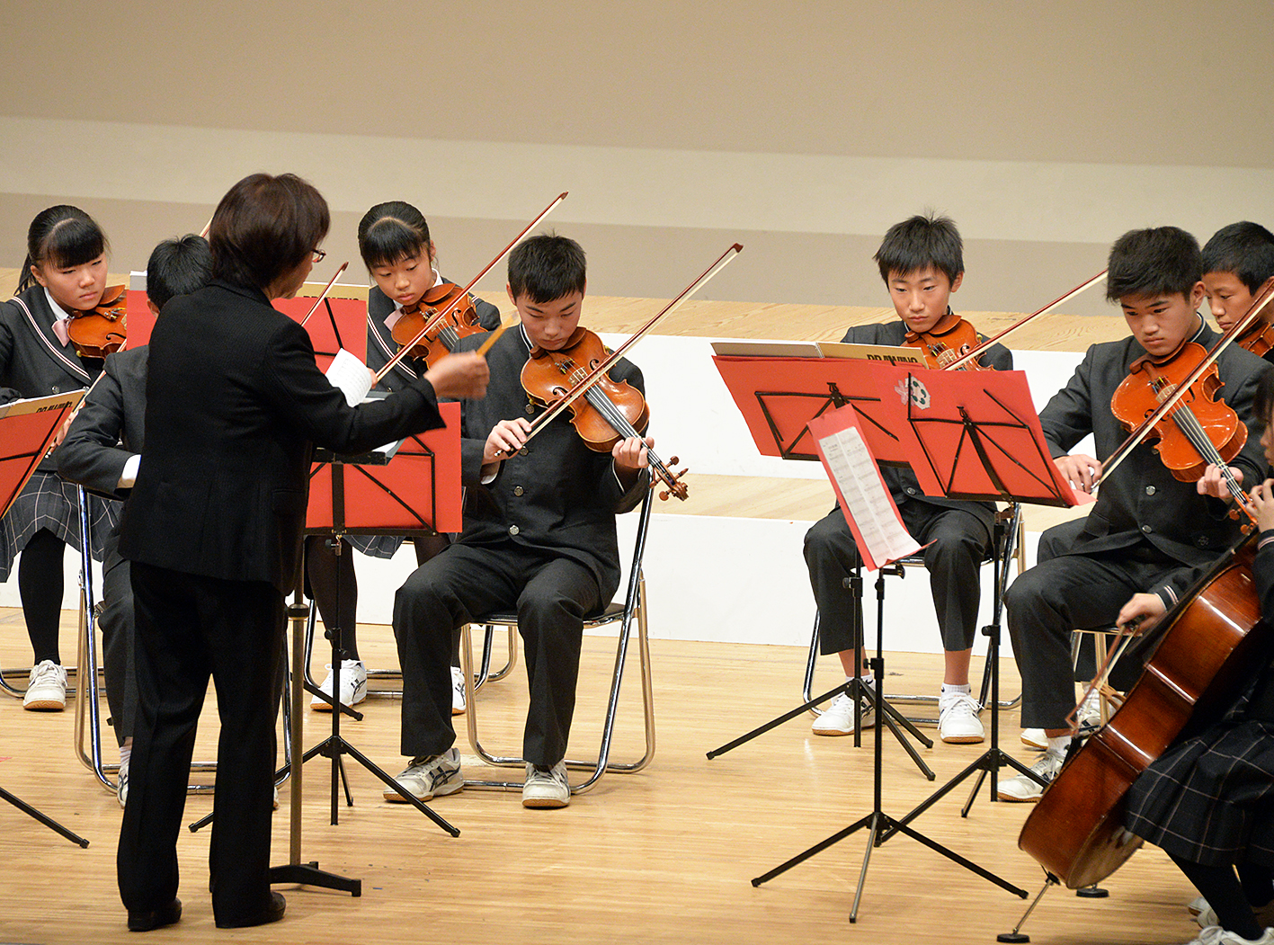 中学校特進コースの2年生の生徒が弦楽器の発表で出場しました。