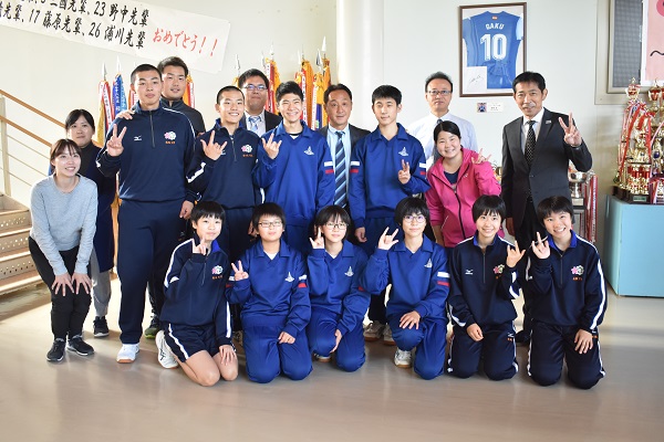 本校交流生徒は、3年3組佐々木裕晟くん・遠嶋大夢くん・遠藤心夏さん、1年2組広瀬万倫さん・坂本愛依さんの5人です。