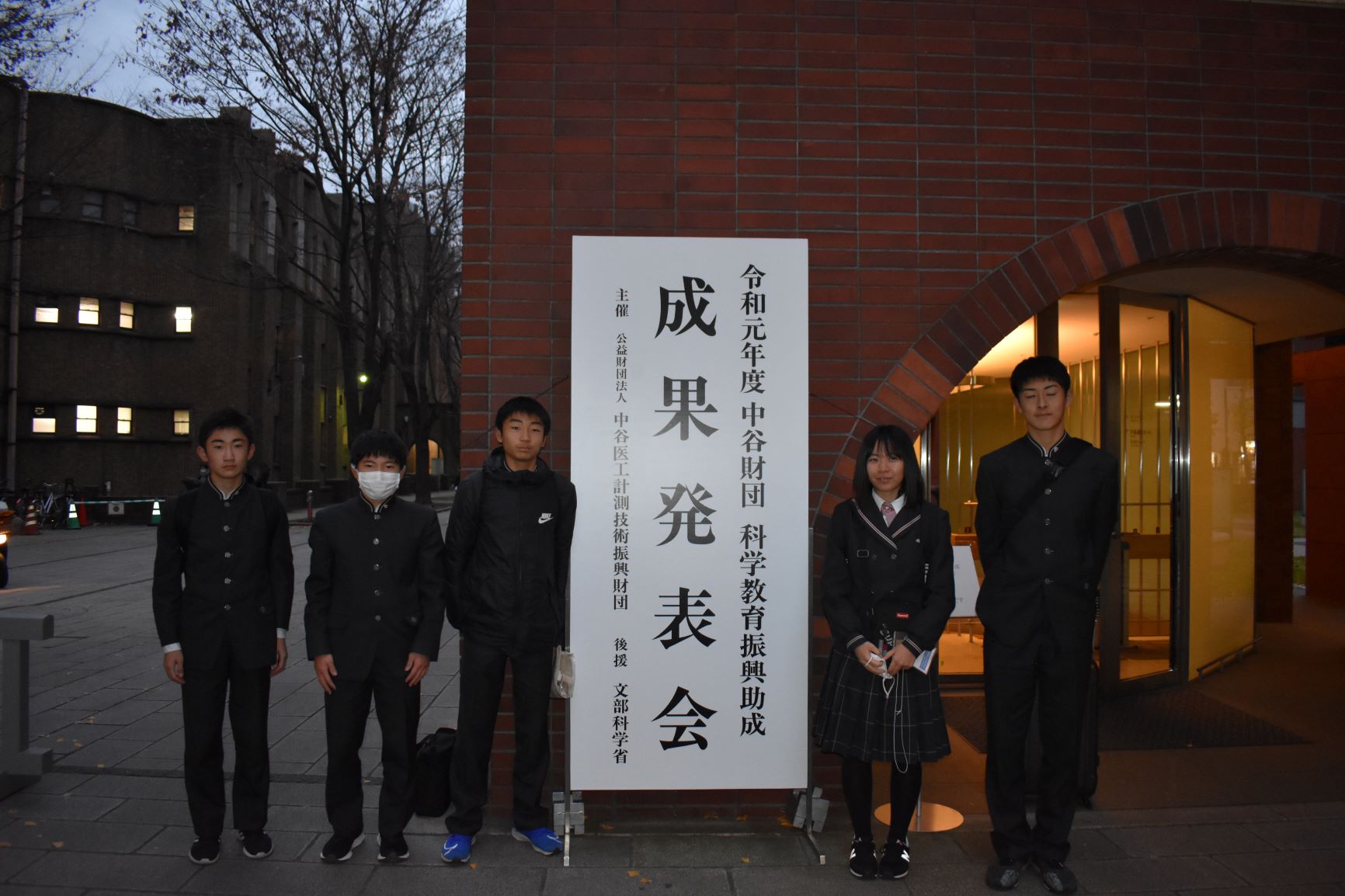 令和元年12月26日、特進コースの2年生5名が東京大学内の伊藤謝恩ホールにて行われた、中谷医工計測技術振興財団の科学教育振興助成成果発表会に参加しました。