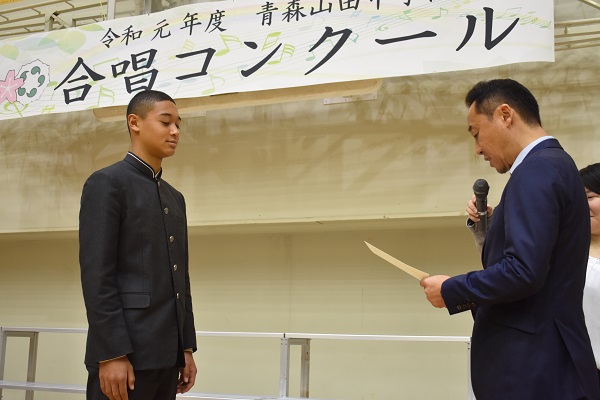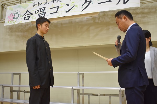 全体合唱後、各クラスの自由曲の歌唱が発表されました。