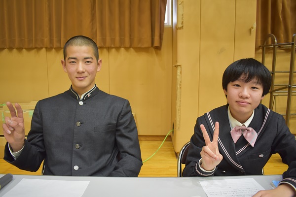 司会を担当してくれた2年2組の佐藤千真くんと1年2組の坂本愛依さんです。