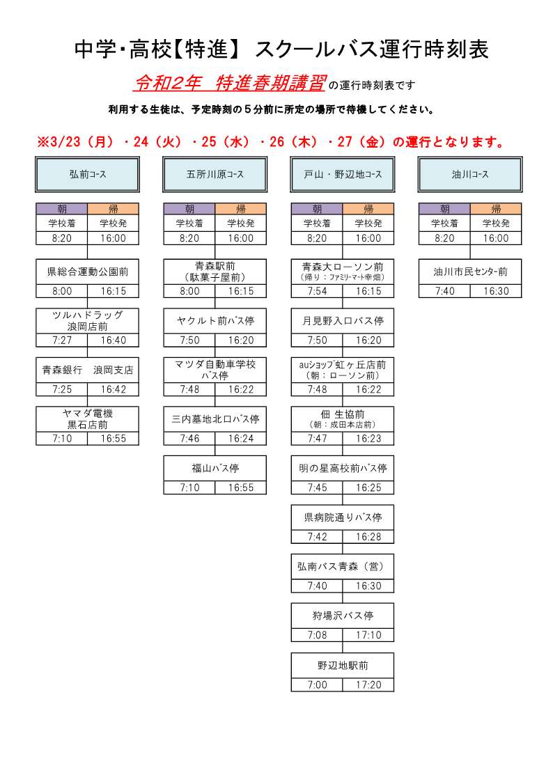 講習中のスクールバスについては下記のように運行しますのでよろしくお願いします。