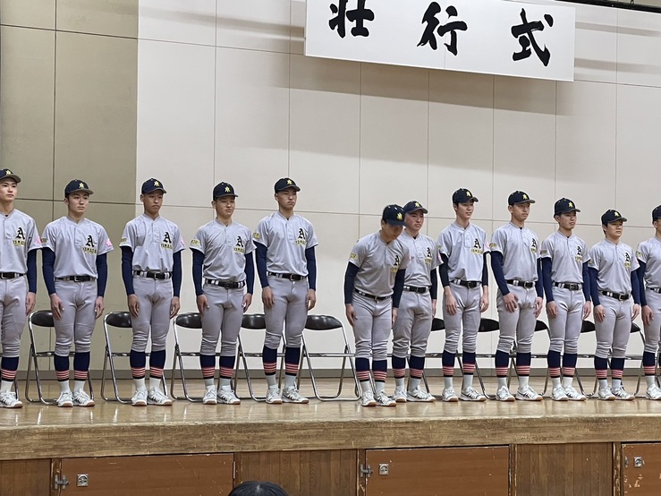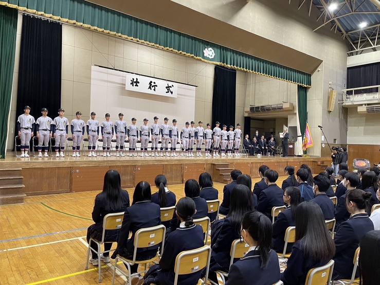 先日、第96回 選抜高等学校野球大会へ出場する硬式野球部の壮行式が高校で行われました。兜森監督、脇野部長を先頭に、力強い行進で体育館へ入場し、兜森監督から選手紹介がありました。3月8日には組み合わせ抽選会があり、いよいよ3月18日には開幕となります!センバツの舞台での本校卒業生・硬式野球部の活躍を心より願っています!
