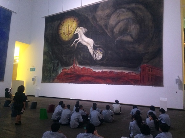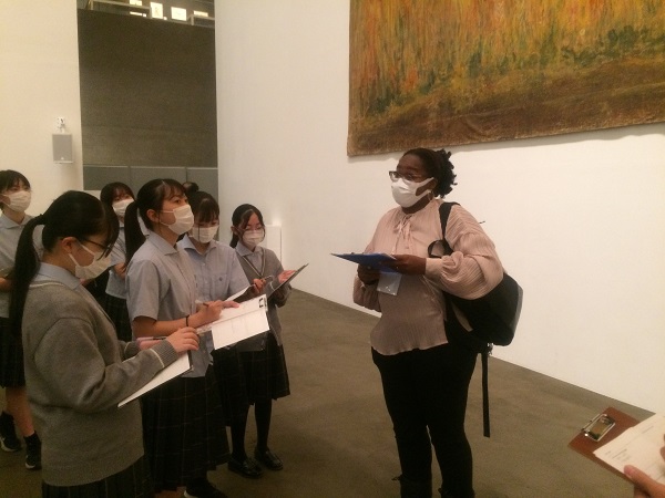 今回は青森県立美術館へ見学に行き、英語担当の梅原先生やシャンダ先生の英語による作品の解説を聴きながら、それぞれの作品への理解を深めていました。