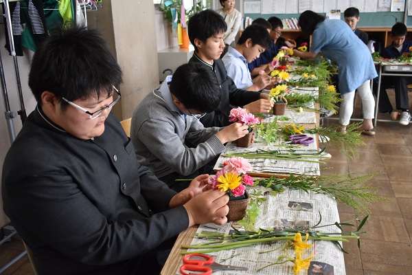 今回は、Flower Boutique CHOPINの吉田由美子先生をお招きして生花店のお仕事について学習しました。