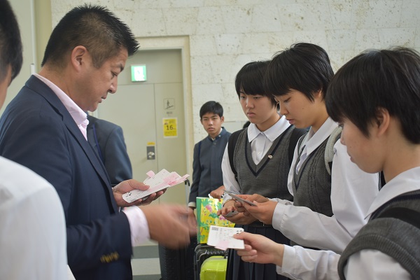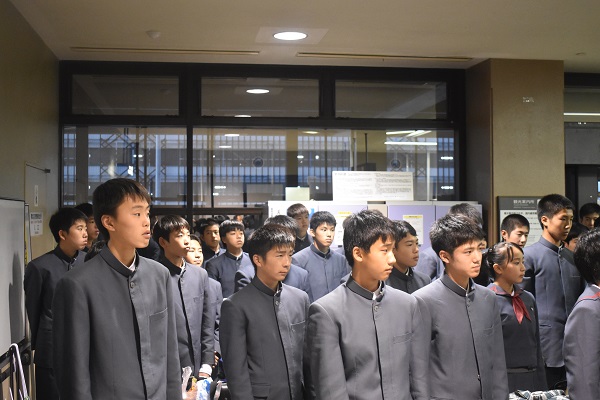 到着式では、校長先生が迎えてくださり、黒田教頭先生と、修学旅行実行委員長の三輪涼平くんが帰宅報告を行いました。