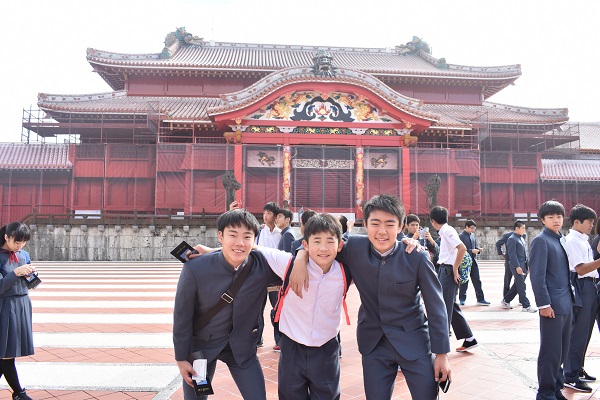 今回の修学旅行は、台風の接近も心配されましたが、雨が降ることもほとんどなく、予定通りの日程を無事に終えました。4日間で、数多くの体験を通して、沖縄の文化を肌で感じることができました。また、規律ある行動をとり、仲間との貴重な時間をめいいっぱい楽しみ、沢山のことを学ぶことのできた修学旅行でした。明日は、事後学習となります。学んできたことを今後の高校生活に活かすために、そして、後輩たちに伝えるために、最後まで一生懸命に取り組みます。