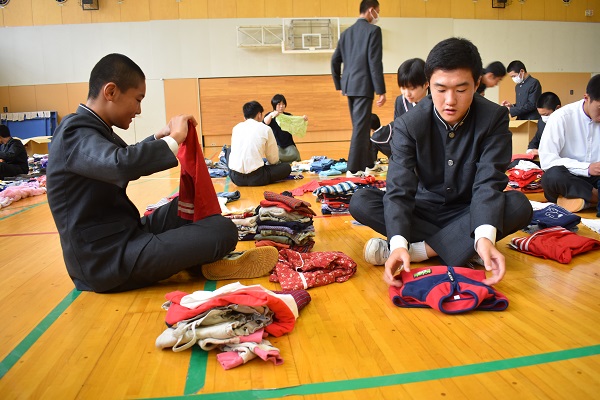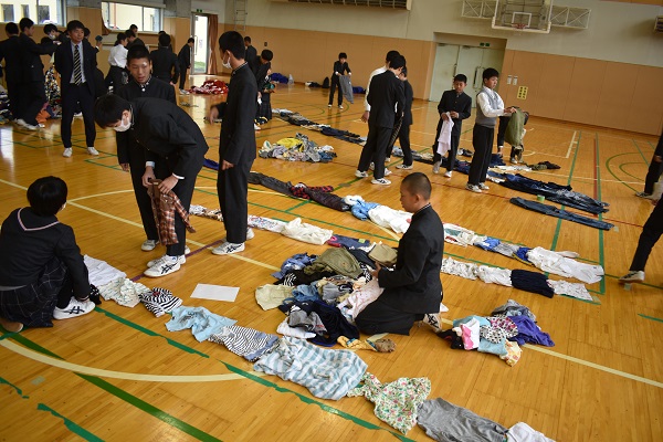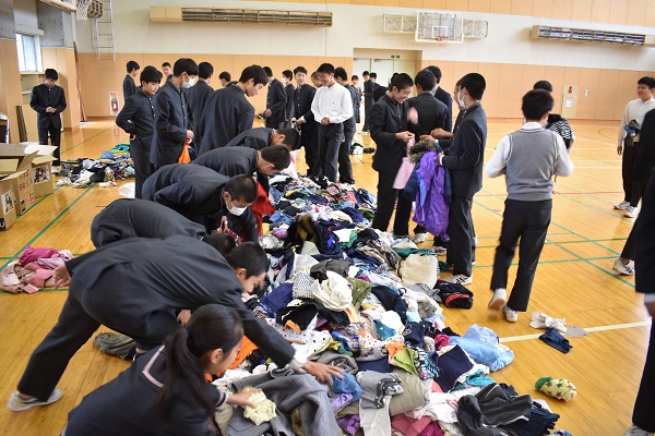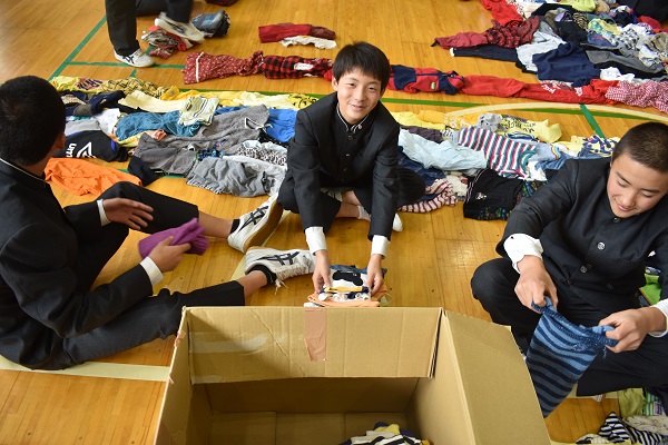 11月12日(火)に2学年による「届けよう!!服のチカラプロジェクト」で回収できた洋服の集計・発送作業を行いました。